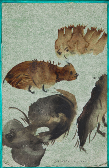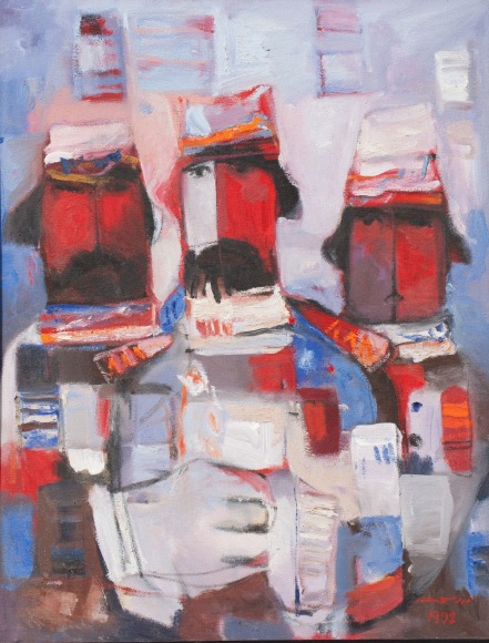 عكست أعمال المدرِّس التغيرات الاجتماعية والسياسية من تلك الحقبة ومنها أزمة القطاع الزراعي في سوريا والحرب الأهلية اللبنانية. كما سعى لتصوير المآسي والصعوبات التي واجهت الناس. رسم شخوصاً تنضح بالجدية والرزانة تحمل أسلوبه الفريد الذي يمتاز برؤوس جامدة مربعة الشكل تستحضر التماثيل الآشورية والشخوص التَّدْمُرية والأيقونات المسيحية. تَحْفَلُ الكثير من أعماله بألوان ترابية مع ضربات فرشاة مركبة وسميكة مع استخدام للرمل في ألوانه أحياناً.
