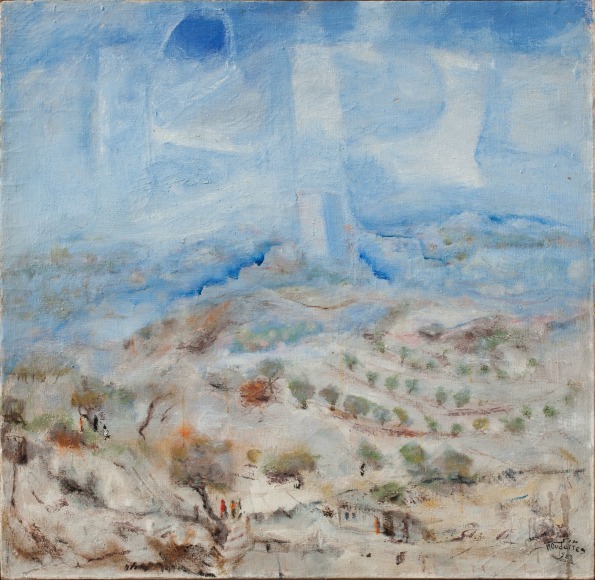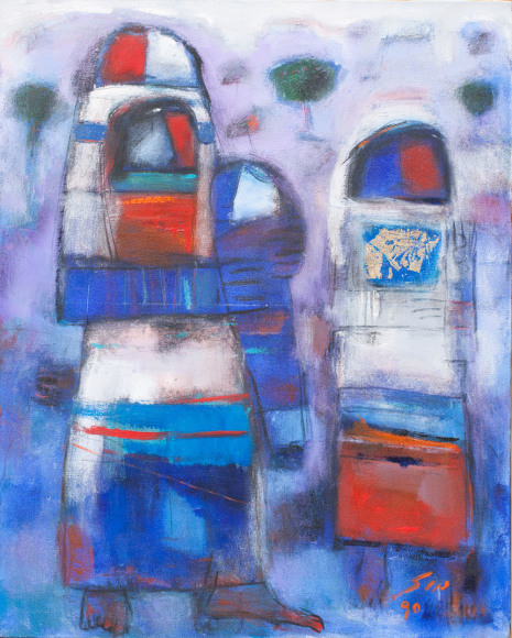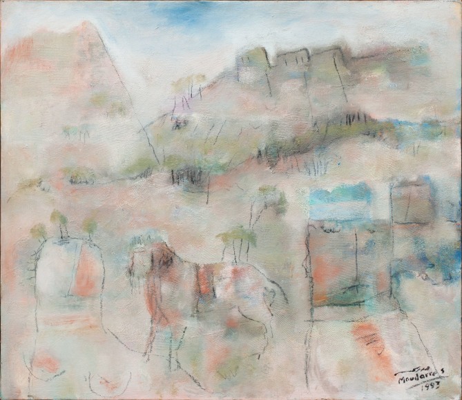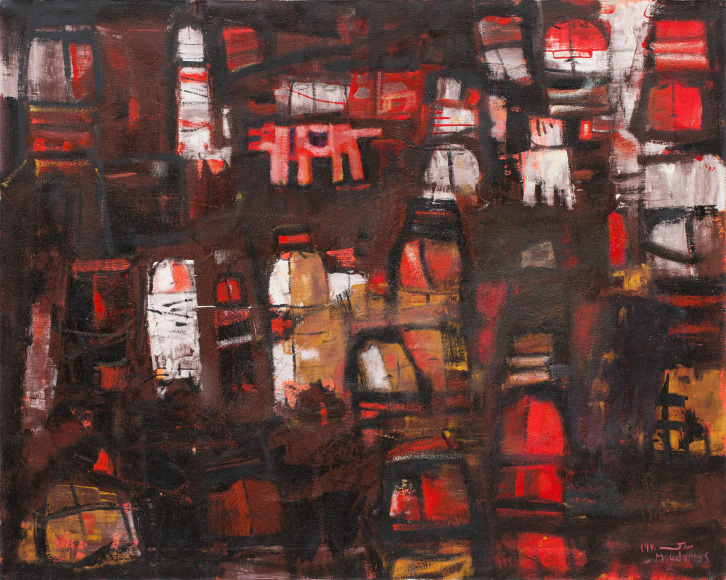 وُلد فاتح المدرّس (1922–1999) في حلب ودرَس في أكاديمية الفنون الجميلة في روما، وأتمّ دراسته العليا في كلية الفنون الجميلة في باريس حتى عام 1972. بدأ بإدخال التجريد في لوحاته خلال وجوده في أوروبا، إلى جانب مزج تقاليد الفن السوري مع التقنيات الغربية، وأخذت موضوعاته بُعداً سياسياً أكثر فأكثر. إبّان عودته إلى سوريا، درَّس في كلية الفنون الجميلة في جامعة دمشق وأصبح عميدها حتى عام 1993، وترك من خلال منصبه التدريسي أثراً بالغاً لدى أجيال متعاقبة من الفنانين. اشتُهر كذلك بأفكاره الفلسفية ومقالاته في النقد الفني التي نشرها بين ثنايا مجلات صدرت في المنطقة.