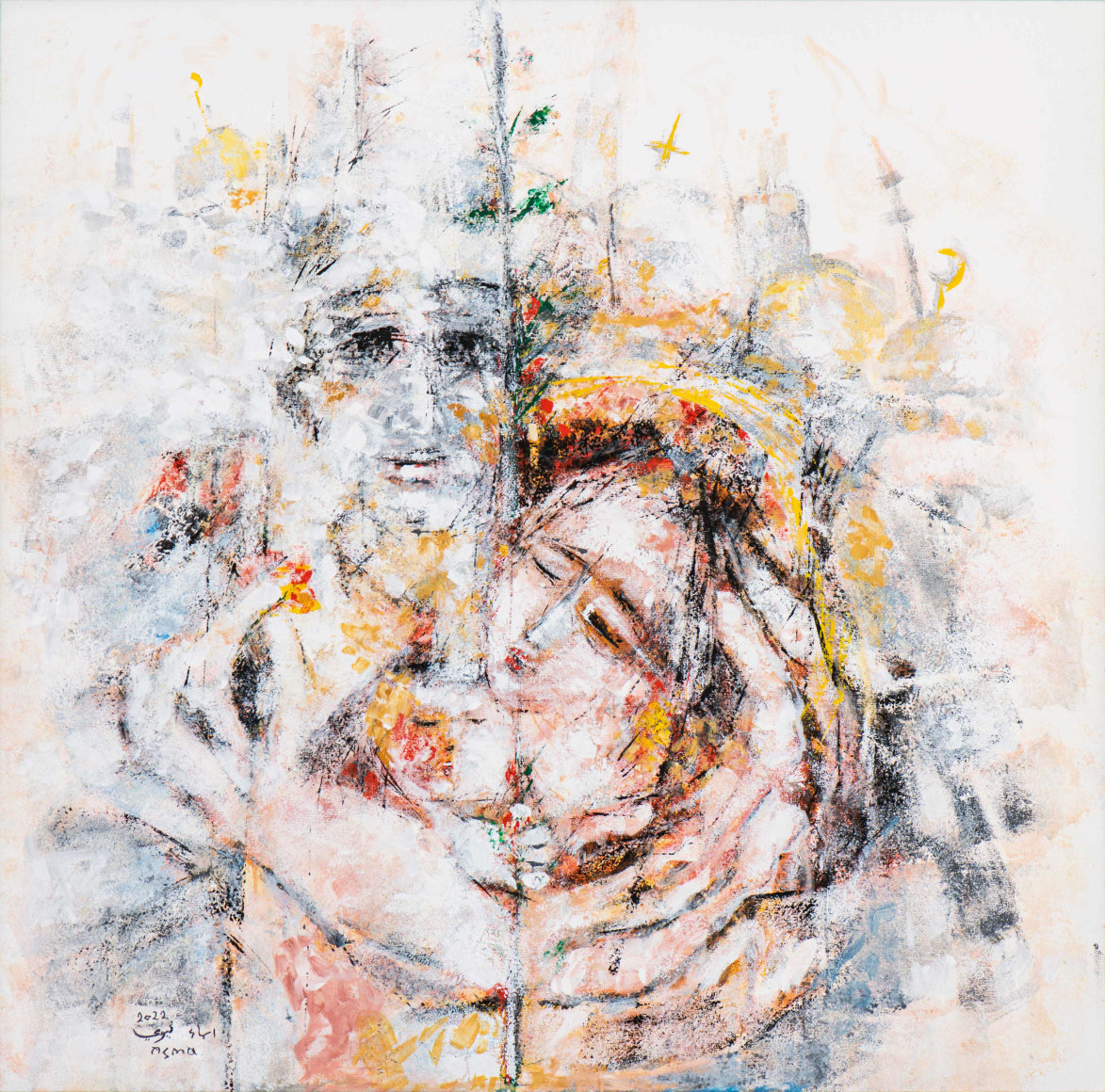 أسماء فيومي مولودة في عمان في الأردن (1943) تخرجت في كلية الفنون الجميلة بدمشق ودرست على يد الفنان الإيطالي جيدو لا ريجينا. في هذه السنوات التكوينية ، أصبحت جزءًا من الحركة التجريدية السورية ، التي تأثرت بالمناخ السياسي وسعت إلى التغيير الاجتماعي. خلال مسيرتها الطويلة ، رسمت فيومي أساليب مختلفة واستكشفت مواضيع مختلفة. في البداية انخرطت في التوجه التجريدي ورسمت شوارع دمشق. بمرور الوقت ، أصبحت أعمالها أكثر تعبيريةً مع رموز متعددة الطبقات وشخصيات ديناميكية ورسومات حيوية. بحساسية وحدس ، تعبر عن مجموعة واسعة من المشاعر من القلق والألم إلى الدفء والحنان.