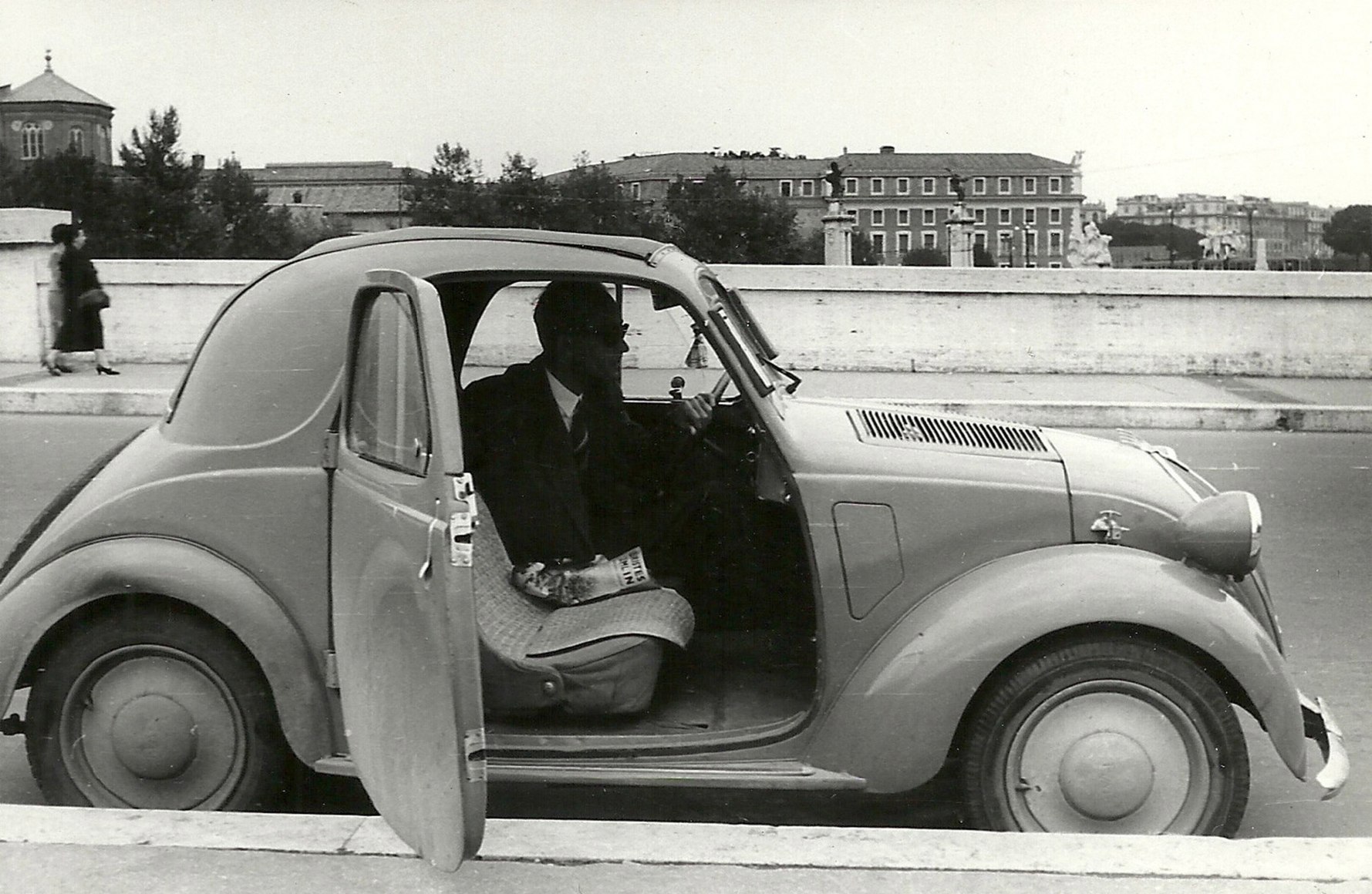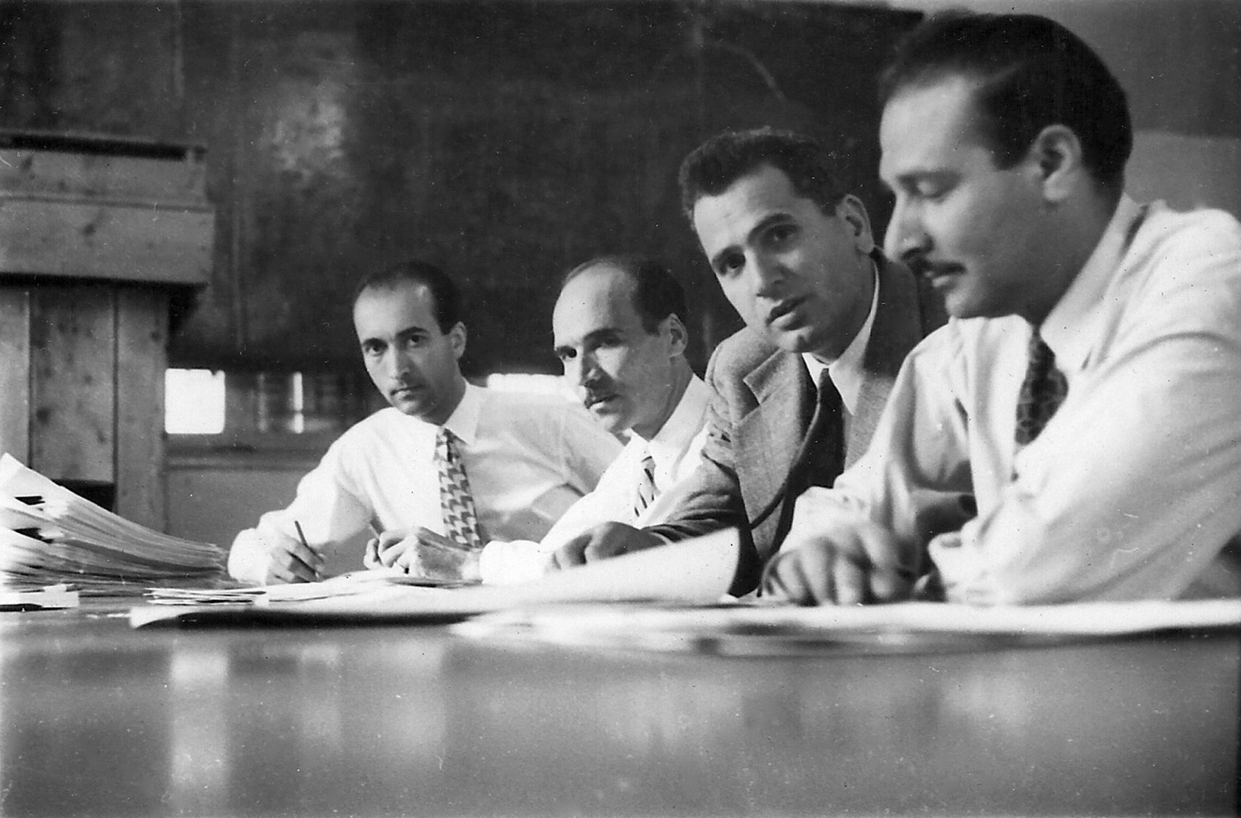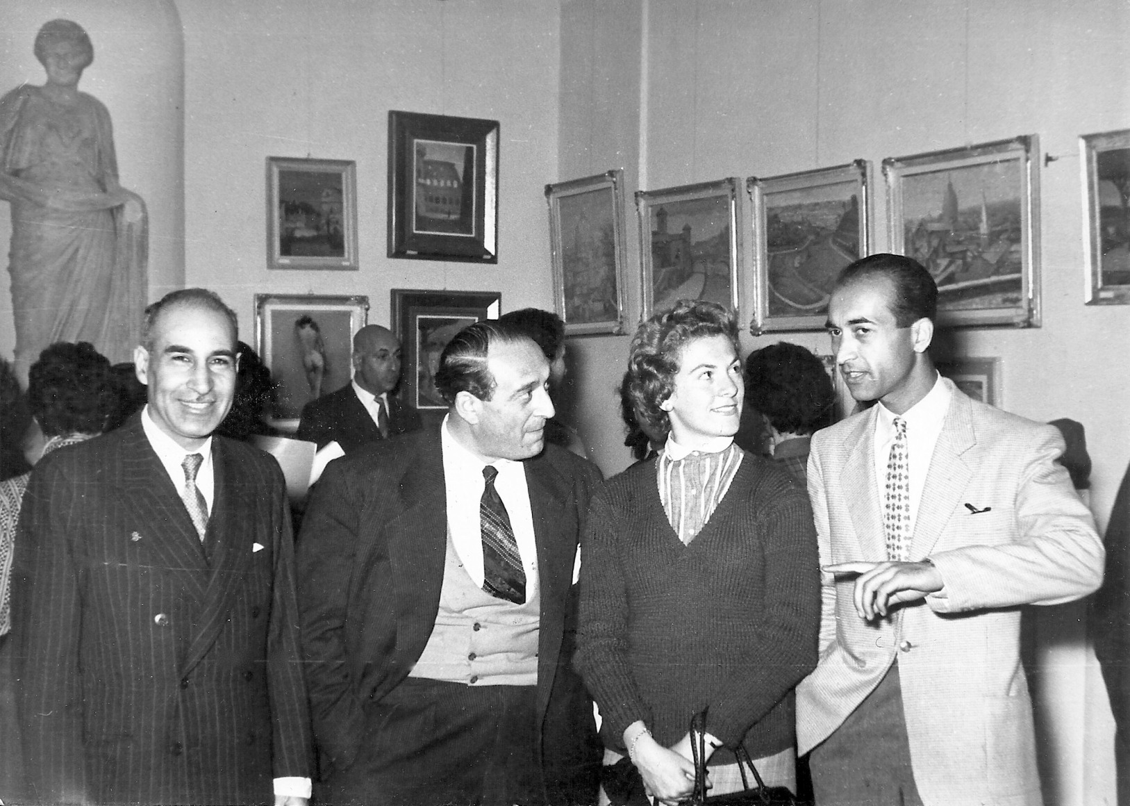 محمود حماد مع أدهم إسماعيل وحسني الحريري و اسماعيل حسني حقي ، رحلة إلى مركز العلاقات العربية الإيطالية ، روما ، ١٧-٧-١٩٥٤