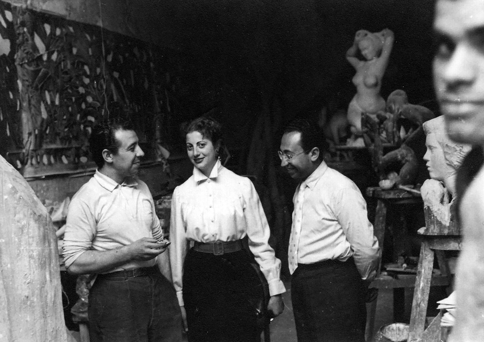 درية فاخوري وبريكلي فازيني وكمال فوزي، روما، ١٩٥٥