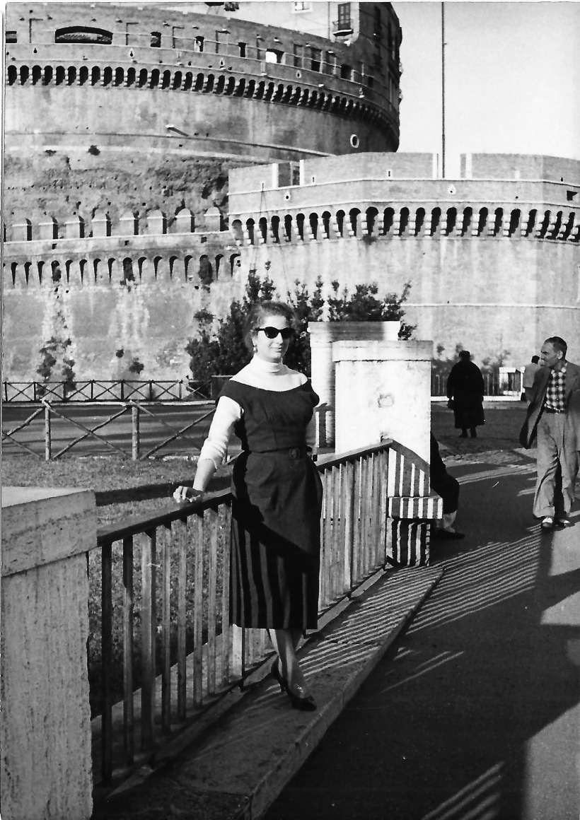 درية فاخوري في السفارة المصرية، روما، حوالي ١٩٥٥
