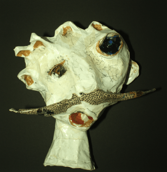 Driving his artworks is the burning need to express the contradictions and ridiculousness of life. His childish figures and animals are often distorted and exaggerated, their eyes bulging, noses and ears enlarged, or sporting elongated moustaches. He frequently uses the symbol of the donkey, known for its stubbornness, while many of the giant heads of the other figures he paints exude their arrogance, naivety or even just stupidity. Known for working in a variety of media, Abou Shaheen creates his characters in soft sculpture, metal, painting, collage and mixed media.