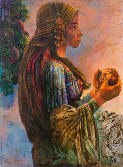 Using vibrant colours, Nabaa’s best-known works portray women amid rich Oriental backdrops as a representation of homeland and history, wherein these archetypical depictions of woman are used as symbols of nationalism. As regional conflicts heightened, the subject of his work began to shift to political themes such as the Palestinian crisis, Lebanese civil war and the American invasion of Iraq.