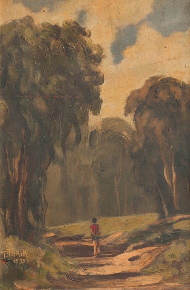 Born in Damascus, Tawfik Tarek (1875–1940) came from a prominent family of military officers under the Ottomans. He studied at the Military Academy of Istanbul, where he was introduced to oil painting. After being imprisoned for nationalist activities, he left for Paris, where he studied drawing, land surveying and urbanism at the École Nationale Supérieure des Beaux-Arts, graduating in 1901. When he returned to Damascus, he worked restoring historic monuments and minarets, and teaching art out of his home as well as his own painting. In 1926, Tarek began working between Beirut and Damascus, influencing artists not only in technique but providing an awareness of cultural heritage and a platform for political engagement. Tarek also founded the Fine Arts Club in Damascus which was one of the first spaces dedicated to art in the city.
