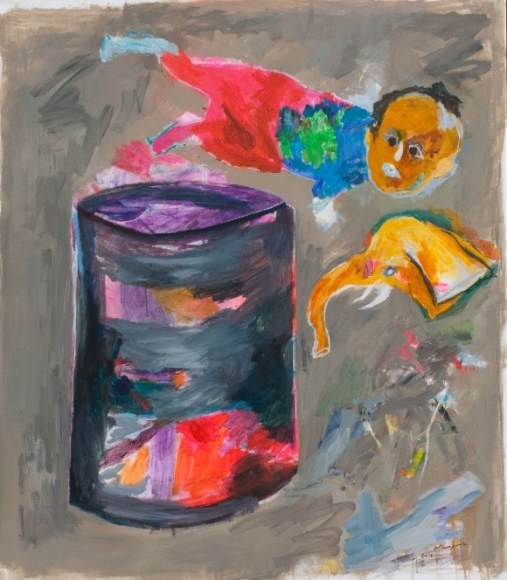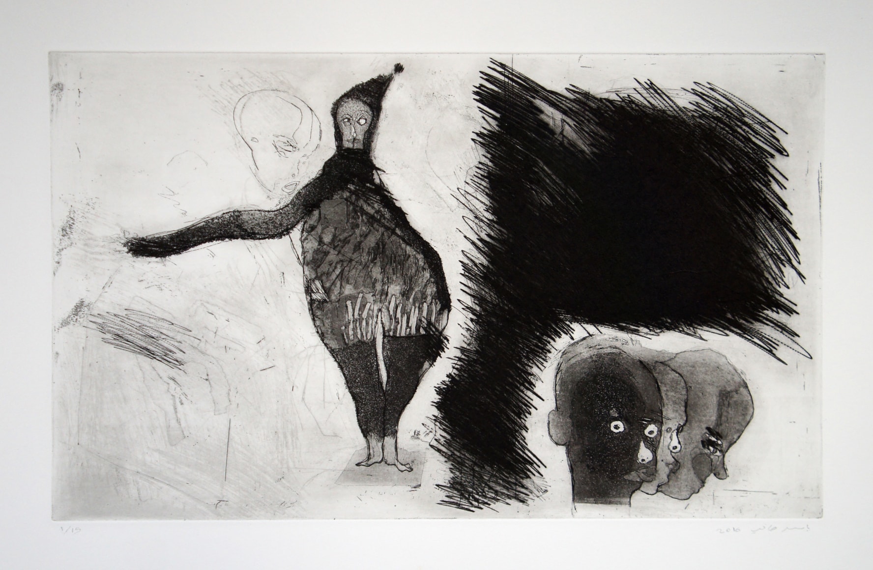 Born in Qamishli, Yasser Safi (1976) graduated from the Faculty of Fine Arts, Damascus University in 1997. He brings to life a cast of abstractly rendered characters that emerge from his imagination and experiences. His pictorial language appears naïve but is connected to the symbolism or contradictions found in childhood – profound meanings concealed behind simplicity.