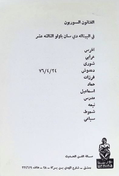 Brochure of the Syrian Artists Exhibition at the 13th Sao Paulo Biennale, forward by Abdul Aziz Alloun, 1976
