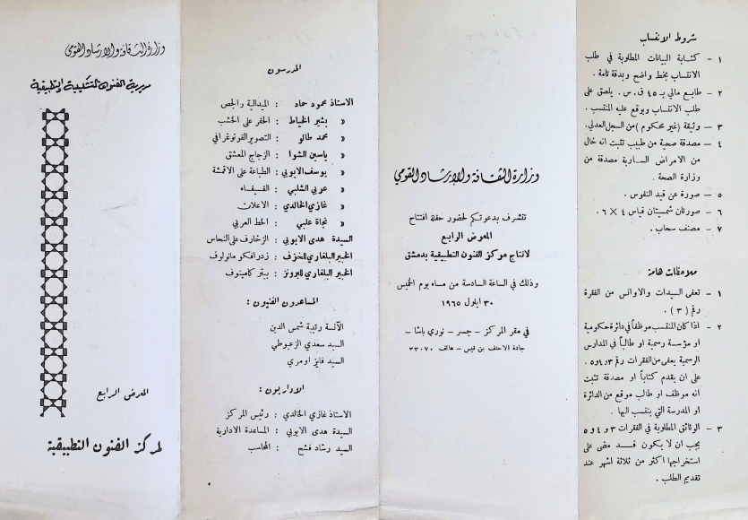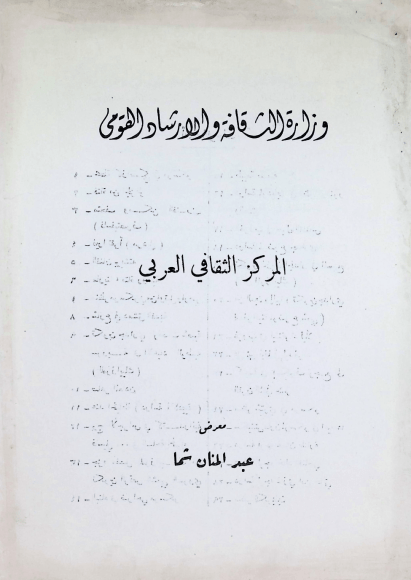 Brochure of the Abdul Manan Shamma exhibition at the Arab Cultural Center in Damascus, date unknown