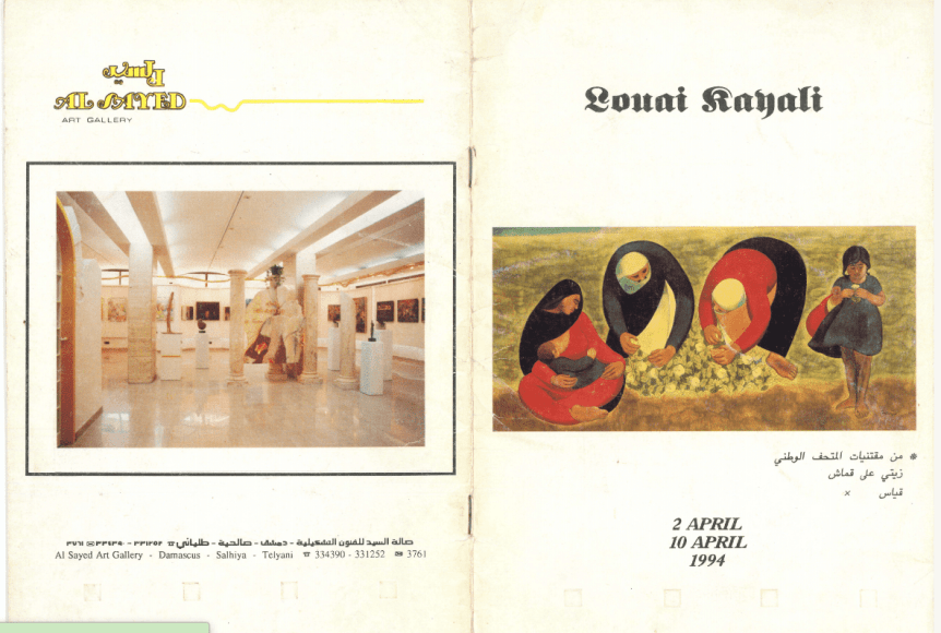 Catalogue of Louay Kayali exhibition at Alsayed Gallery in Damascus, forward by Fadel Sibaei, 1994