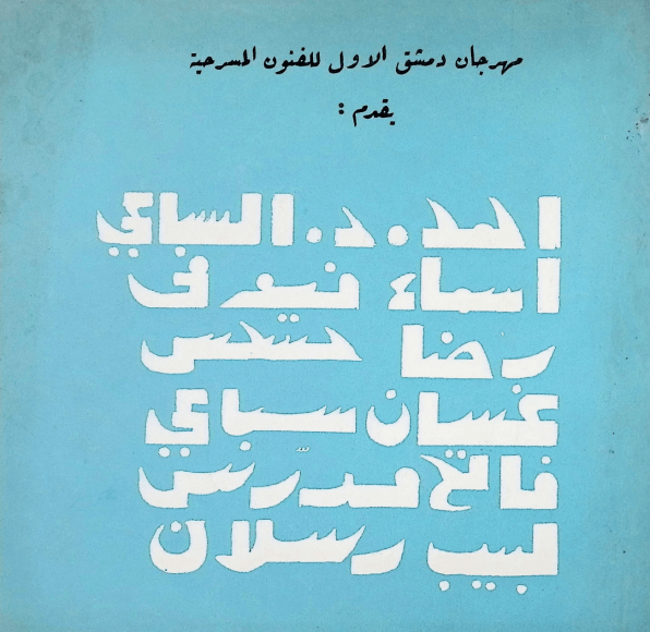 Catalogue of Damascus Festival of Theater arts at Laic institute in Damascus, forward by Abdul Aziz Alloun, 1969