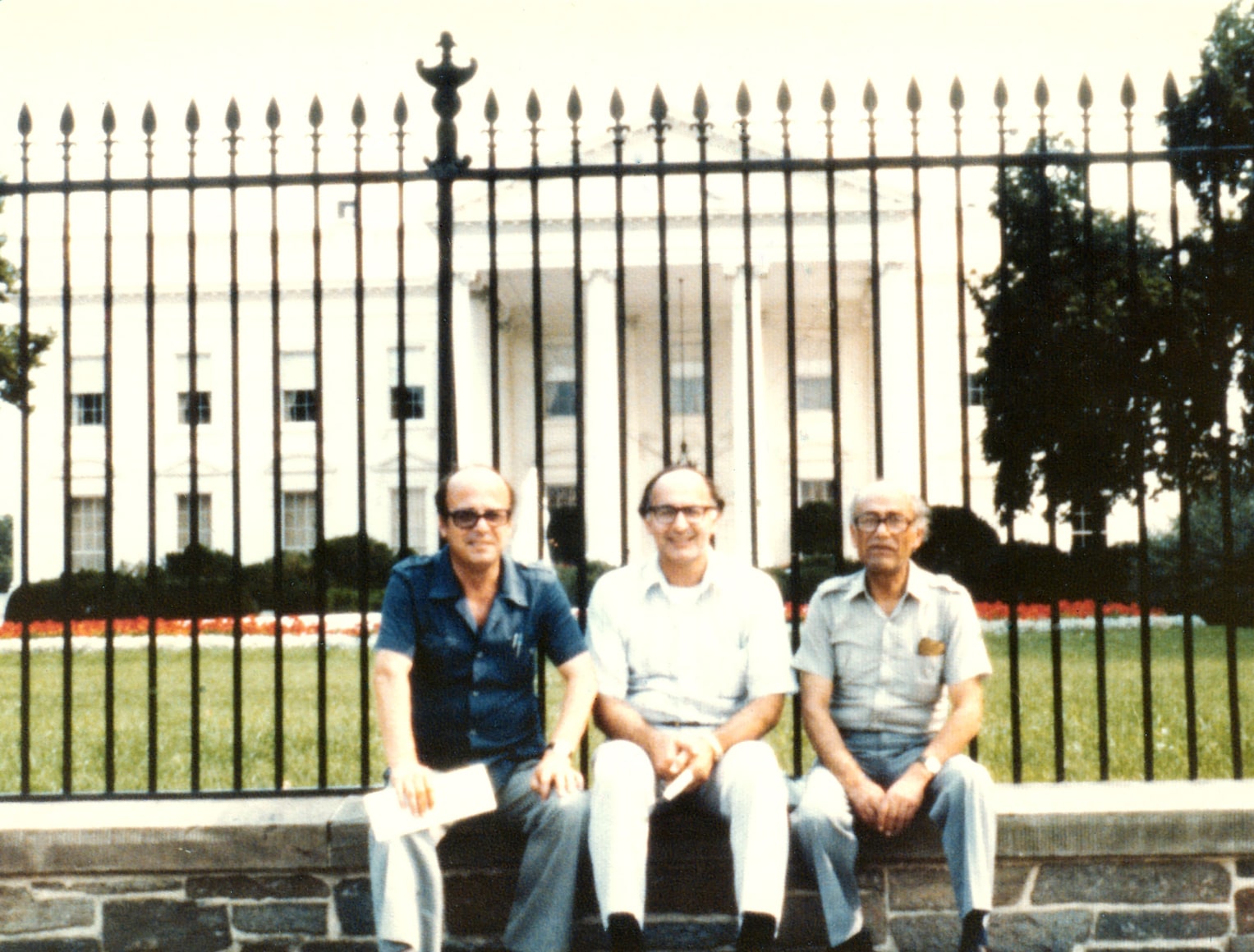 Abdulkader Arnaout with Nassir Chaura and guide Shawki Talya at the White House, trip to the USA, 07-1980