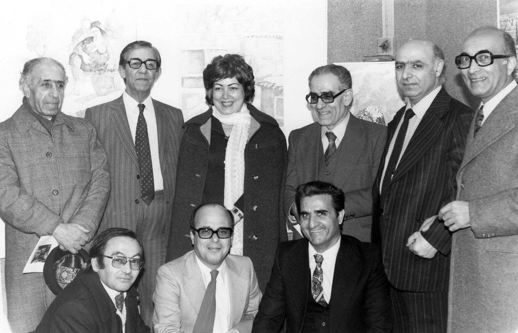 Mahmoud Hammad with Abdulmanan Shamma, Abdulkader Arnaout, Milad Alshayeb, Mamdouh Kashlan, Tarek Alsharif, Orfali, Alaujami and ministre Najah Alattar, 1980