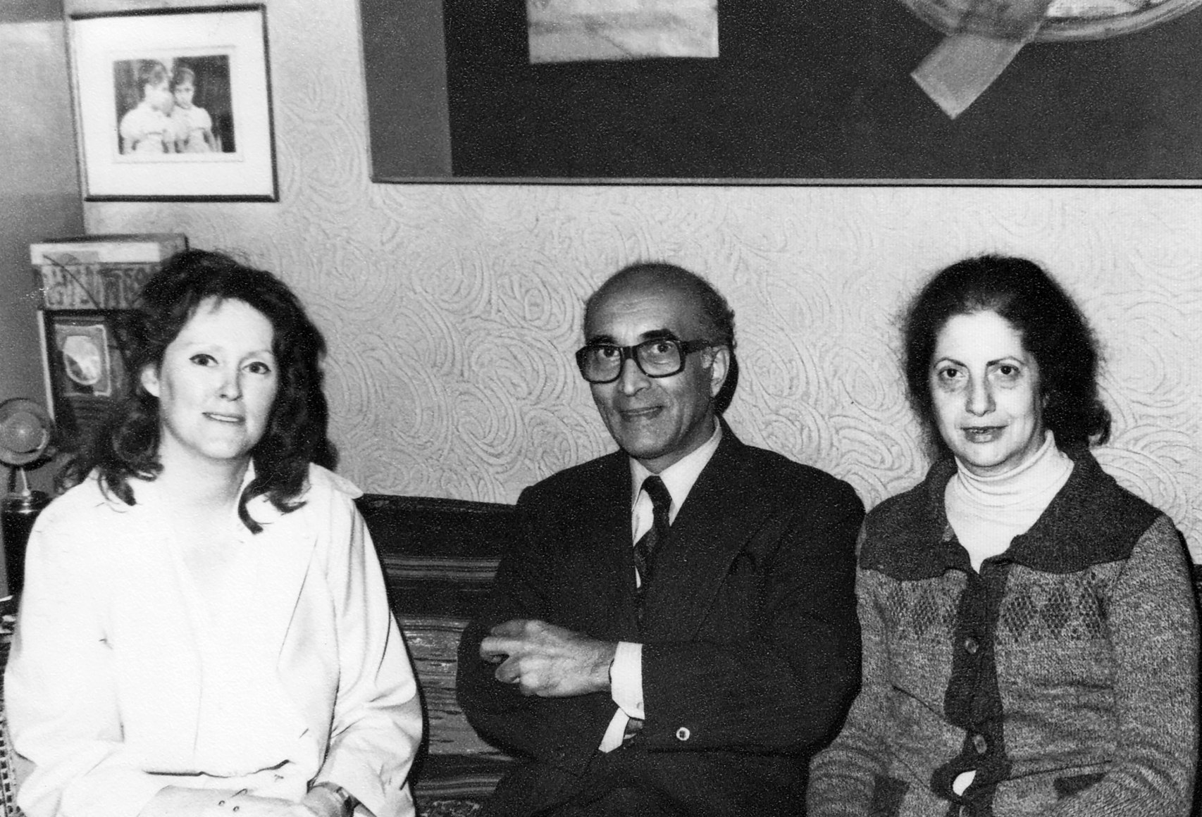 Derrieh Fakhoury with Mahmoud Hammad and Mrs. Hotchkiss Malt at her house in Damascus, 1980