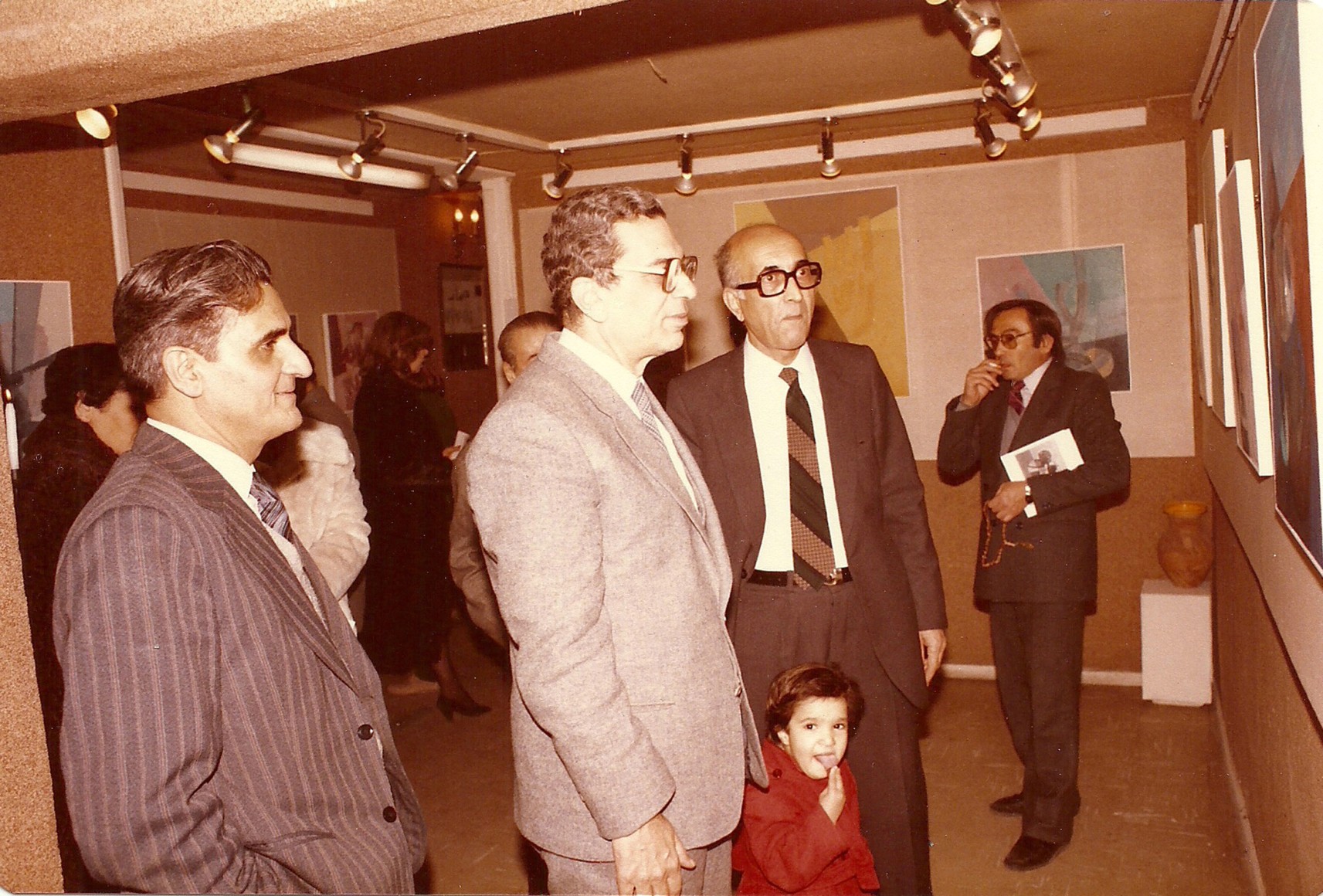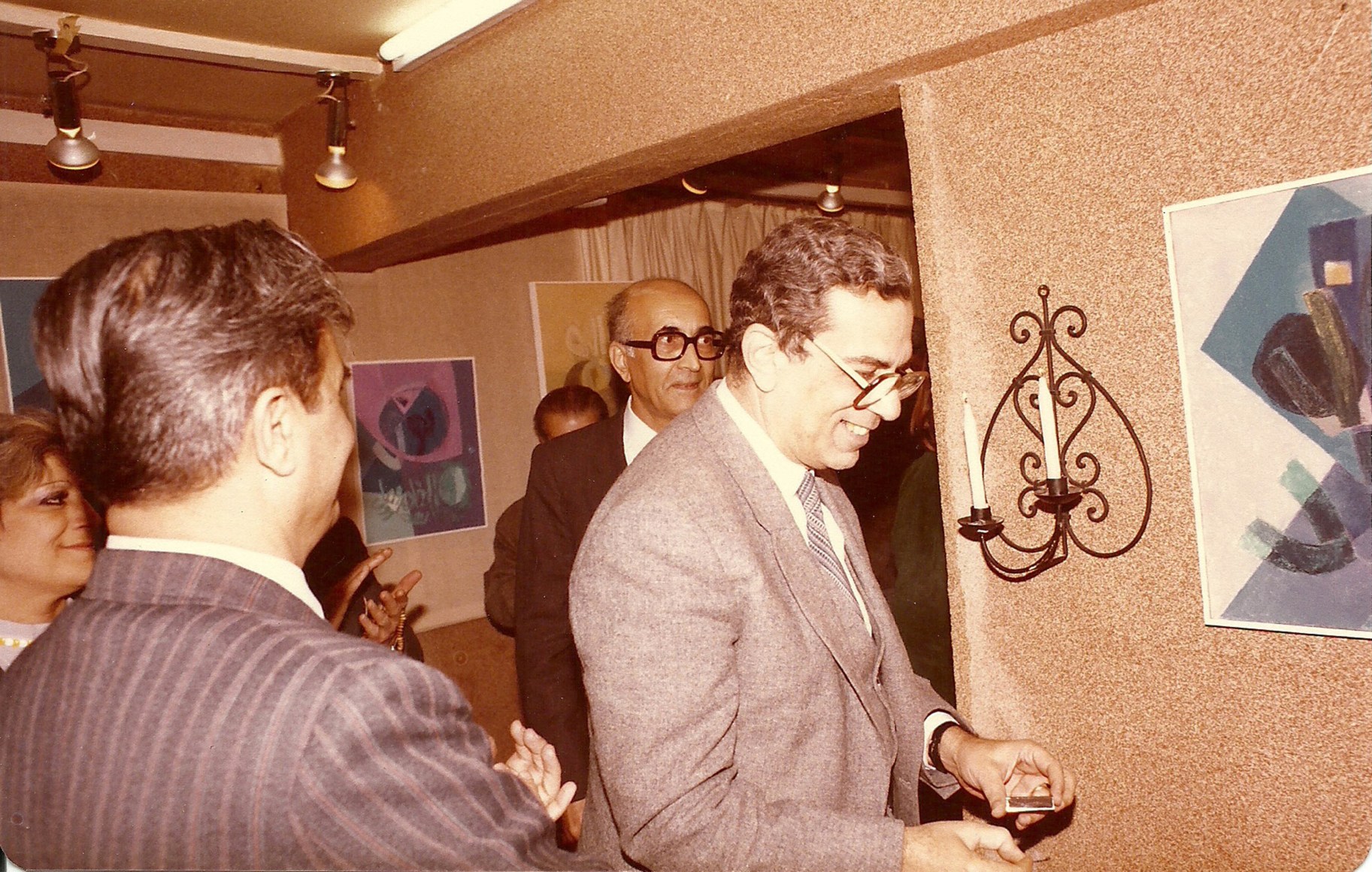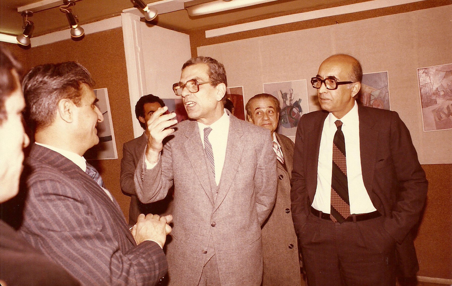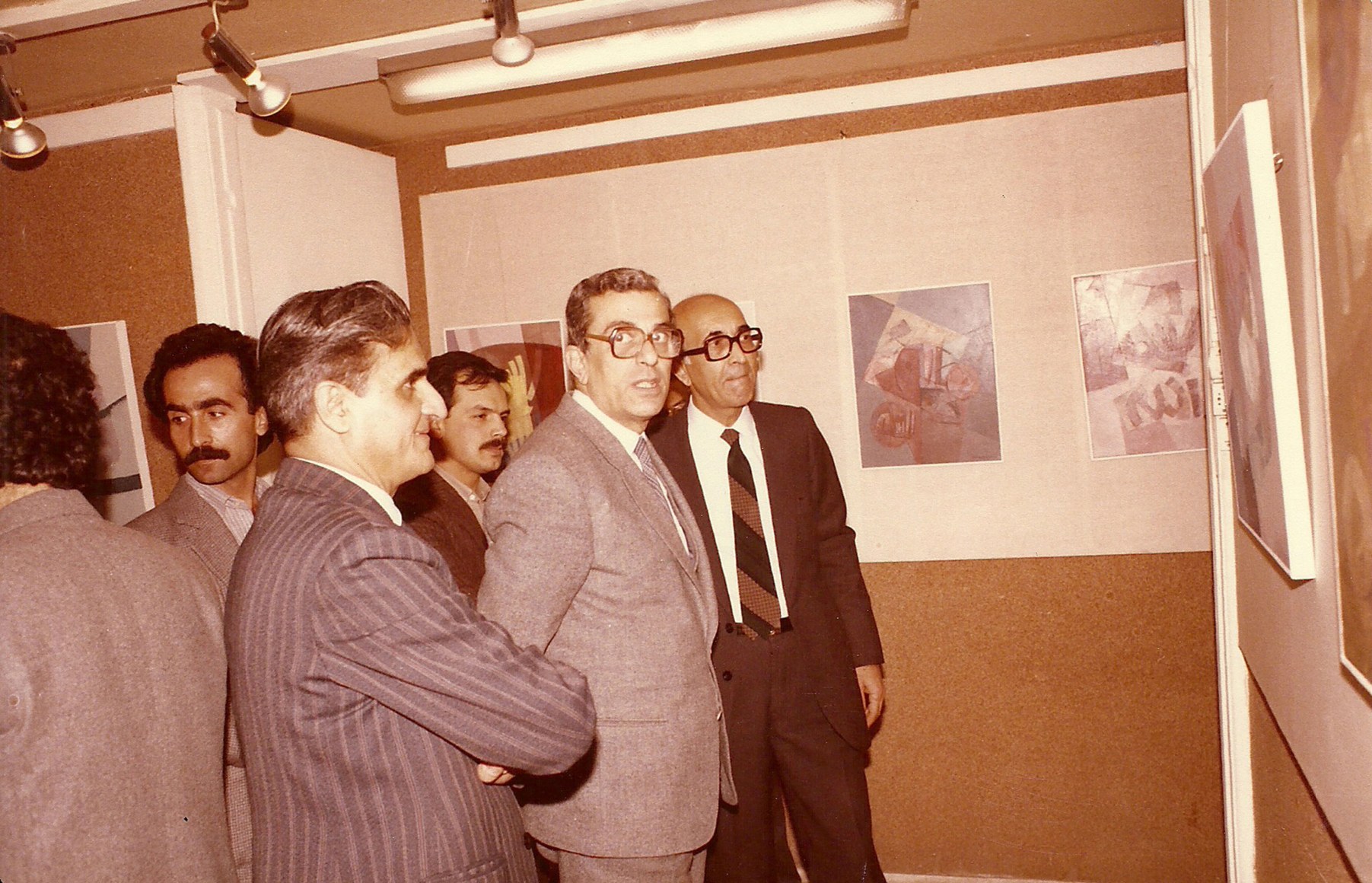 Mahmoud Hammad with Mamdouh Kashlan and the assistant of the minister of culture Hisham Haddad, solo exhibition, Gallery Ebla, Damascus 22-01-1985
