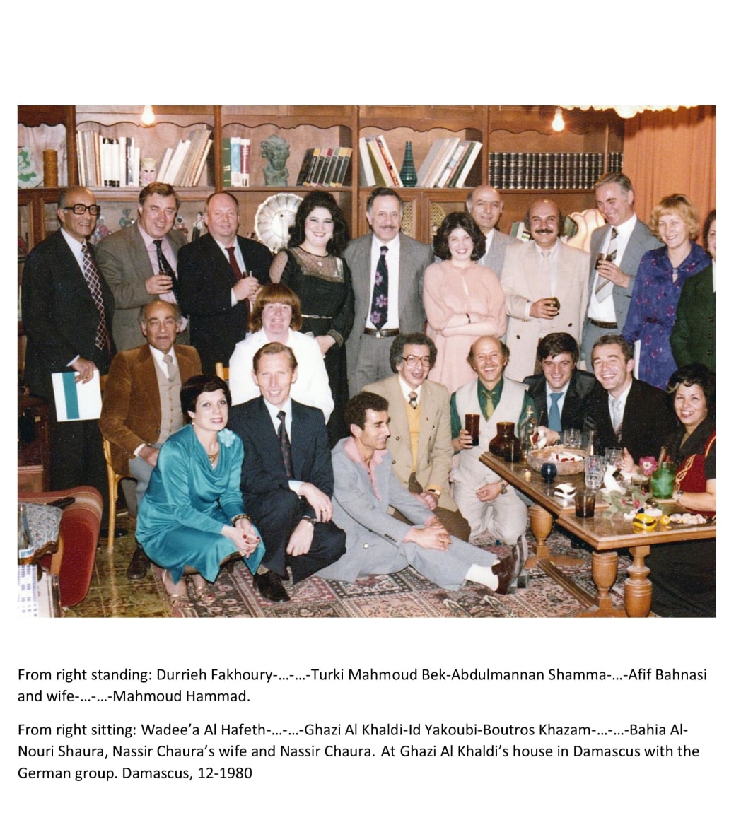 Mahmoud Hammad and friends with the German group at Ghazi Alkhaldi's house, Damascus, 12-1980
