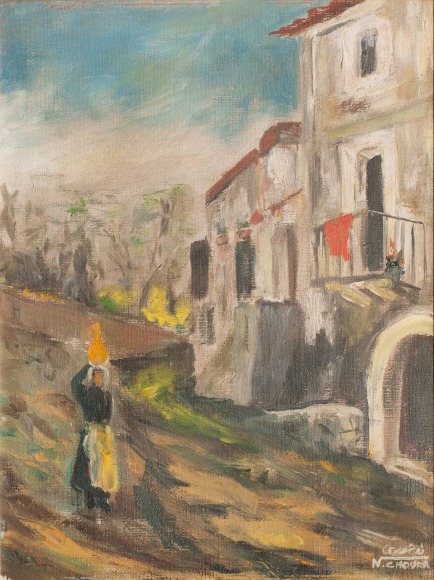 وُلد نصير شورى (1920–1992) في دمشق، واستهلّ مشواره في عالَم الرسم منذ أن كان في المدرسة، ثم انتقل إلى إيطاليا في أواخر ثلاثينيات القرن الماضي لدراسة الفنون الجميلة. خلال الفترة المضطربة التي سبقت اندلاع الحرب العالمية الثانية، غادر شورى إيطاليا متوجهاً إلى مصر ليتخرّج في النهاية من قسم التصوير في كلية الفنون الجميلة في القاهرة عام 1947.