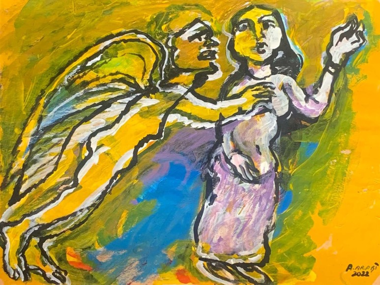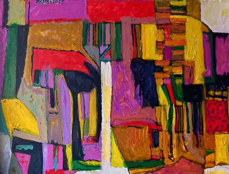 متأثراً بذكرياته عن سوريا، طوّر الفنان والمنظّر الفنيّ والناقد أسعد عرابي أسلوبه في اللوحة لتصوير مناظر المدينة وإيقاعات وتعابير الجسد الشهوانيّة لدى شخصيّاته. تتأرجح بين التمثيل والتجريد - وفي بعض الأحيان تربطهما معاً - تتمتع حقول الألوان والأشكال التي تشكّل لوحاته بقيمة غنائية. في الواقع، للموسيقى دور حاضر في عمله، فالفنان يشعر دائمًا « أن هناك ارتباطًا بين الموسيقى والشكل.» «عندما أستمع إلى الموسيقى، أستطيع أن أتخيل أشكالًا معينة تتشكل، وعندما أنظر إلى المدينة، أستطيع أن أشعر بالموسيقى فيها.» يوضح عرابي كيف أن إحساسه بالألوان الكثفية وضربات الفرشاة المميزة يرتبطان بالإيقاع الموسيقي، وأنّ أشكاله تتطور كمزيج من البصر والصوت.