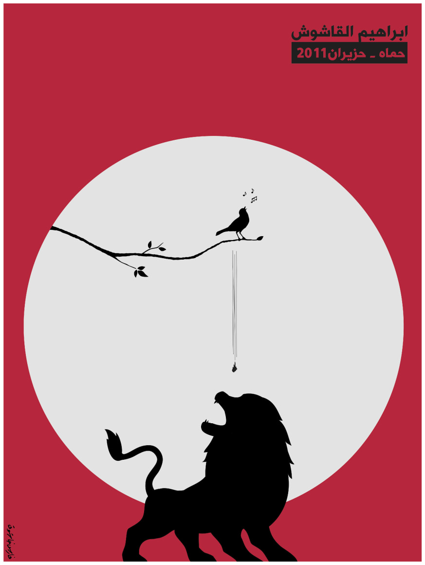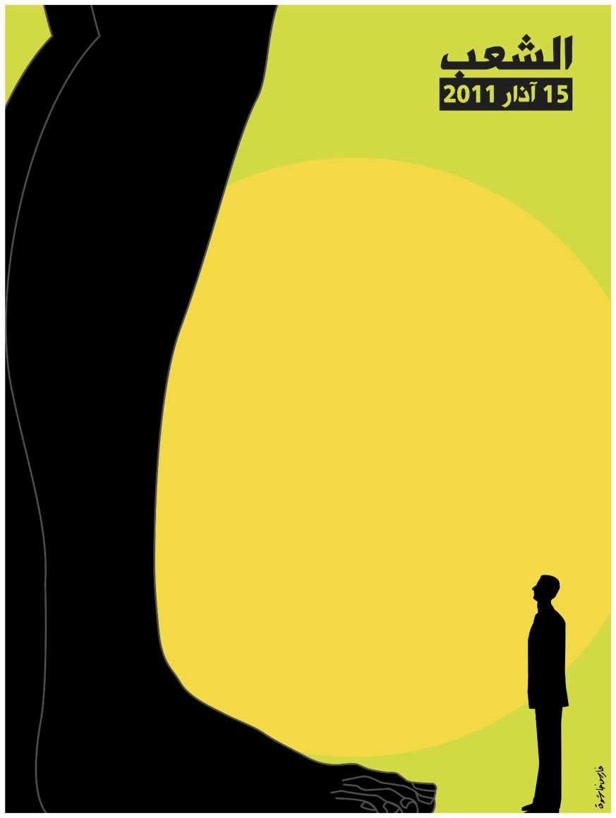 Capturing the fervour of the revolution in Syria, Fares Cachoux is known for his poignant posters. Intended to be accessible for mass consumption, he says: "The poster should be as clear and flagrant as the events of the uprising… Here lies the conundrum! You need to summarise these complex events with the minimum number of components, without losing its meaning."